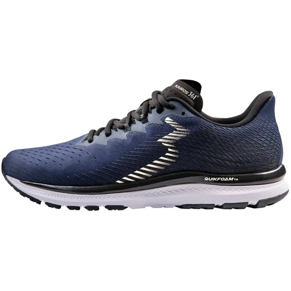 Кроссовки 361° Kairos были разработаны с использованием недавно разработанной системы подгонки MORPHIT для динамической и воздухопроницаемой поддержки в верхней части вместе с высокоэффективными технологиями платформы QU!KFOAM, LT EVA и Ortholite из Meraki 4. Длина пятки также изменилась. был увеличен, чтобы вместить больше для достижения стабильности. Эта обувь представляет собой сочетание всех проверенных технологий, обеспечивающих максимально динамичный и комплексный бег.