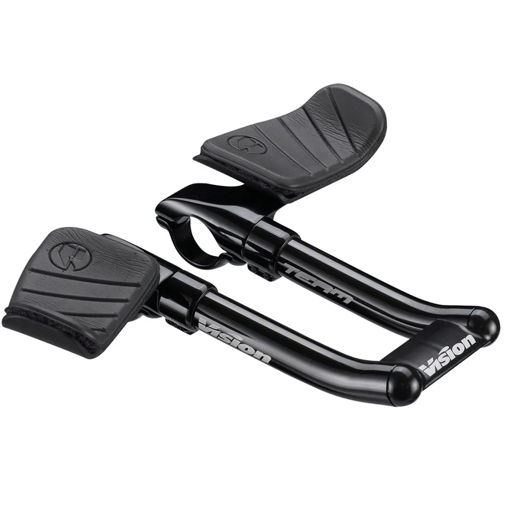 Алюминиевый лежак на руль Vision Team Mini TT Clip-On для руля шоссейных велосипедов ориентированных на триатлон и гонок на время. Подходит для длинных дистанций.
