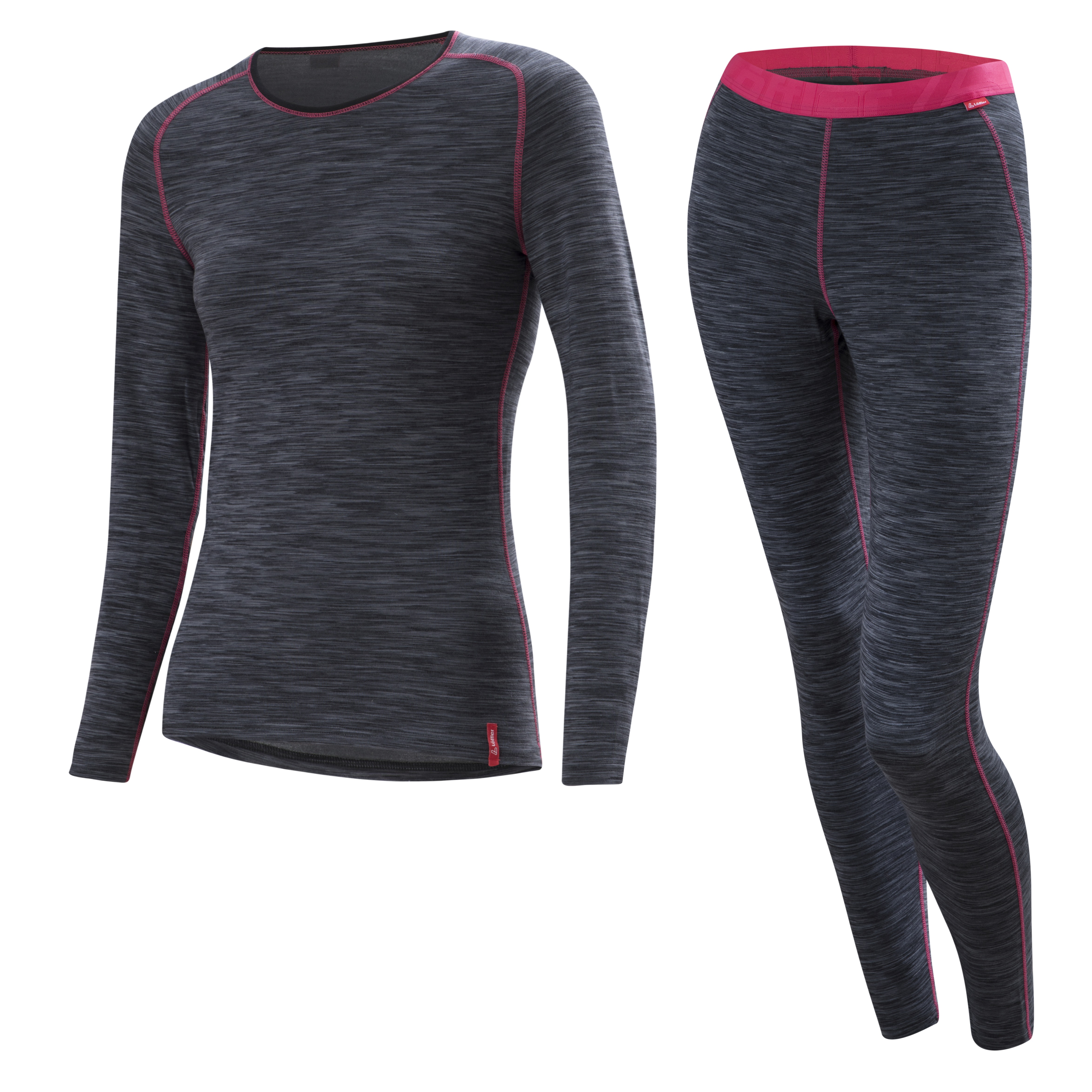 Комплект термобелья LOFFLER Merino детский (104, 758 Серый меланж/розовый)